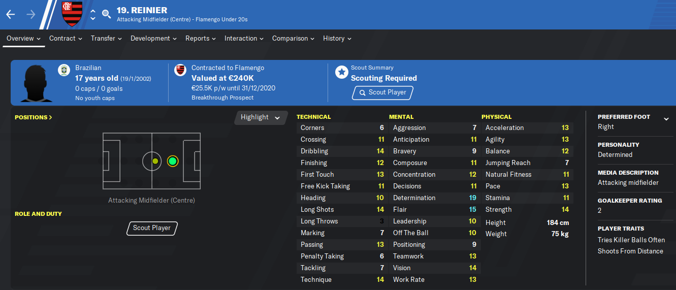 THE biggest South American talent. Reinier looks set to reach the absolute pinnacle. Only 17, he has already made his debut for one of the most prestigious and wealthiest sides on the continent in Flamengo. He can score goals, he’s a great passer of the ball but is his general ball control and ability to dribble in tight spaces that make him stand out. He has captained various Brazilian youth sides and it wouldn’t come as a surprise if he’d eventually captain the Seleção. An absolute must-have if you are aiming to strengthen your side with a high-potential player.
