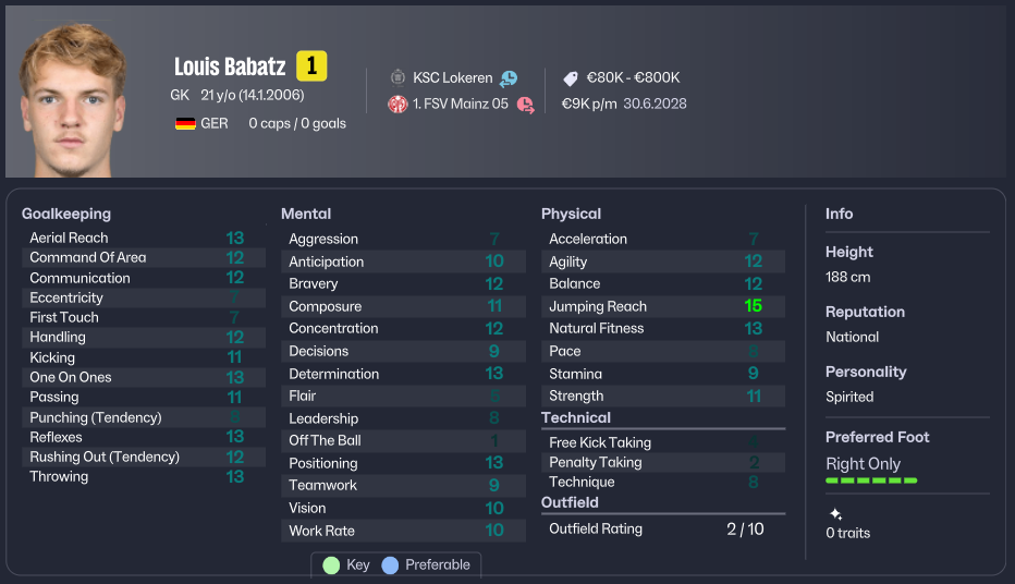 His release clause was about €10M. I gave him a new contract, and the release clause was increased to up to €18M for foreign clubs. He was also called up to the Belgian senior national team by Ralf Rangnick at the age of 17…