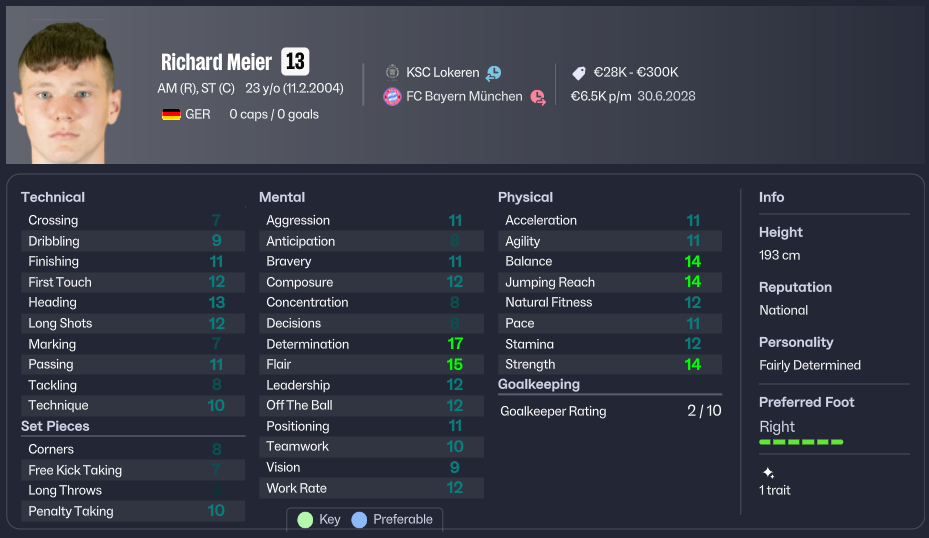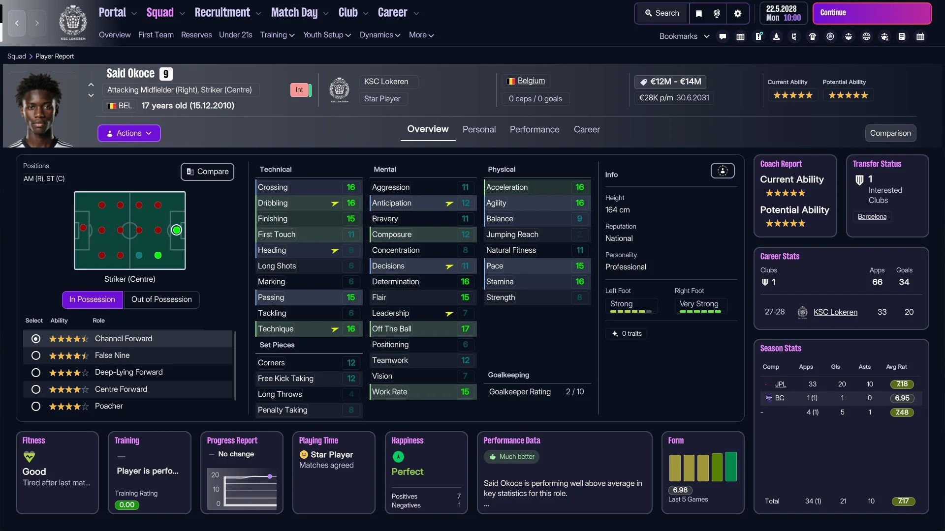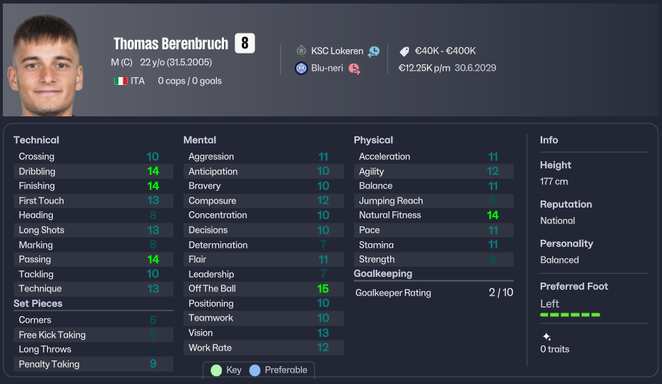 Playing mainly as a Channel Forward within our 3-5-2 formation, his reputation increased during the last two years, and a couple of weeks ahead of the end of the 2027/2028 season, he was named 2nd in the NXGN 2028. At that time, he was wanted by Barcelona.