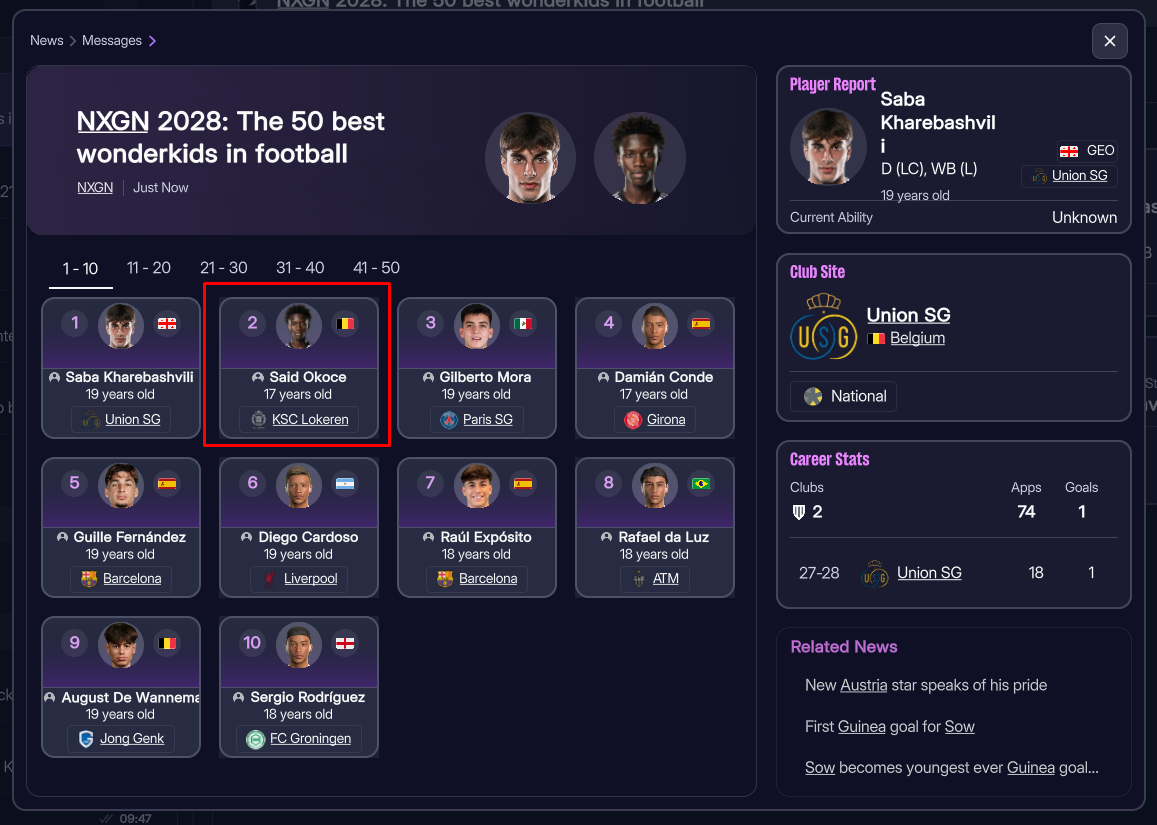 The first youth intake of this save delivered a couple of very good young players, including Said Okoce. The young winger or striker is 100% one of the best newgen I’ve ever had in the Football Manager. He has been our key striker since the start of the second season, and his development continued very well.
